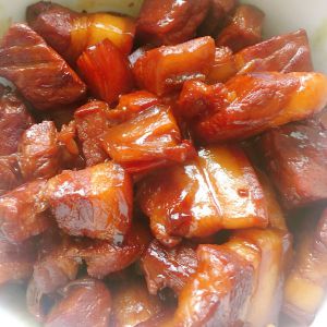 小火熬冰糖、放入五花肉、料酒、配料、倒入开水大火煮开转小火慢慢炖、完美起锅。