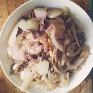 忘拍照了。热锅加油,油热后放洋葱丝,姜丝爆香,然后放腌好的羊肉,大火翻炒,加生抽,加入洋葱片,断生后出锅