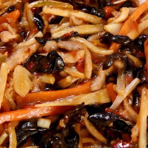 木耳提前泡好,与茭白、胡萝卜都切丝备用。