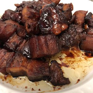 糖熬到这个颜色的时候,放入已经煎好的五花肉