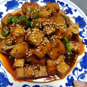 豆腐切块,炸一遍,或者不炸,看自己喜好。