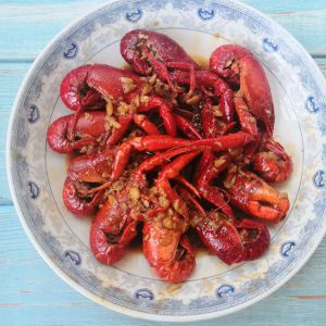 倒入啤酒,加盐,糖,再倒入适量水,没过小龙虾