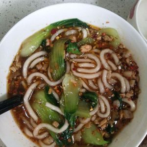 在大碗里加入适量盐(别放多了,因为有咸菜,还要放生抽),2勺生抽,3勺醋,1勺藤椒油(藤椒油是关键,麻油也可,实在不行麻椒用油炸一下也凑合),1勺香油,葱花,喜欢吃辣的加辣椒油或辣椒面,香菜。