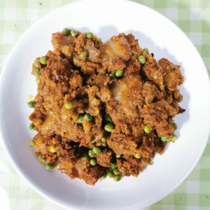 加入豌豆,和匀。腌制半小时以上,有助于入味。