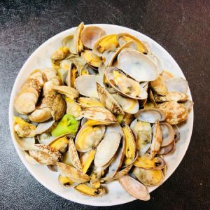 花蛤清洗两遍 水里放一小勺盐浸泡10分钟以上 滤水后两个盆相扣使劲摇晃花蛤促使花蛤吐沙 再冲洗两遍后沥水