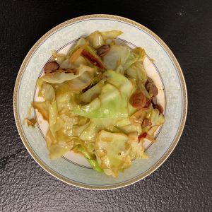 锅中加入包菜 翻炒一下 然后加入刚才调好的汁
