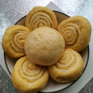 我又揉了几个单色南瓜馒头和加了红枣做了几个开花红枣馒头。