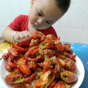 小龙虾记得用油炸一下,放入做好的蒜蓉倒入啤酒一瓶,调料全都倒进去。煮制粘稠就出锅啦