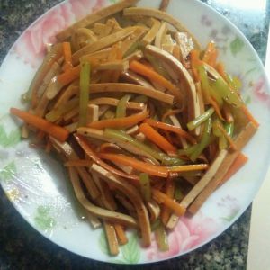 热锅放油,下入胡萝卜和莴笋炒至断生。