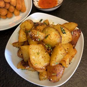 (⚠️我是今天刚好要炸东西所以顺便炸了土豆,如果不想炸,也可以平底锅多放一点油,小火慢慢煎土豆,直到脆壳慢慢焦黄)