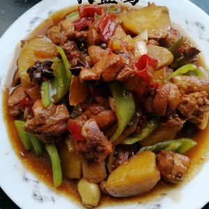 迅速顺锅边下入鸡块改大火翻炒,淋入料酒翻炒。