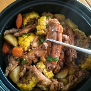 倒到砂锅里面去,加胡萝卜和玉米煮10来分钟吧