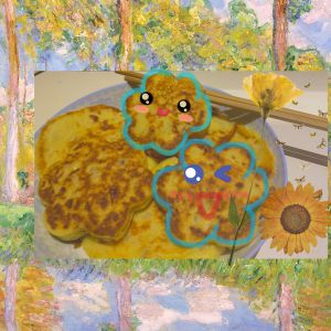 平底锅热锅刷油,倒入,一面成形了翻另一面至金黄。为了增加颜值,我用了小花模具,你们也可以哟