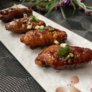 鸡翅上火加水,姜片,葱,料酒,烧开焯一下撇出浮末捞出洗净控干水份(可只加姜片)