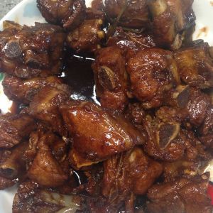 锅内烧油,油热后下姜片、葱段爆炒,炒香后下排骨,加生抽,一勺老抽炒均后加水莫过肋排,加糖,加盐,大火收汤,出锅后加味素,大功告成