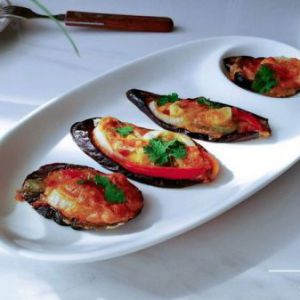 看情况往上怼芝士碎或者盖芝士片,再送进两百来度的烤箱里烤到茄熟芝士焦