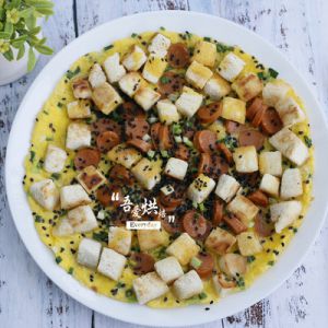 淋入锅中,不需要搅拌,等鸡蛋煎成饼底即可。
