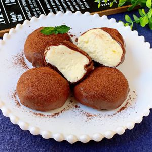 外皮材料:糯米粉、玉米淀粉、细砂糖、可可粉混合