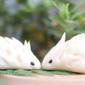 全程剪好后,用黑米做眼睛。黑米粒选小一点的,装饰眼睛正好