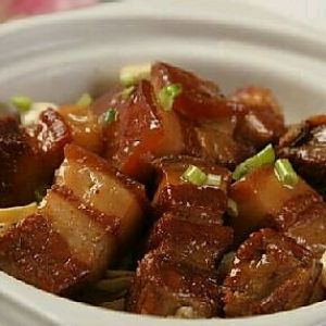 锅里下油,加冰糖,炒至棕褐色,将肉下锅,挂糖色,盛出备用。