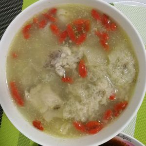 认识一下新鲜竹荪是酱紫的噢。这里用的是干品,先用温水泡10分钟。