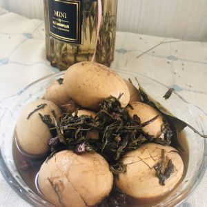 白水煮蛋至8成熟,然后用勺子把蛋表面敲裂,放入桂皮,八角,茶叶,生抽,盐等调料。大火煮开,转小火焖30分钟