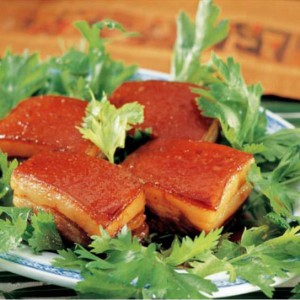 将肉块放入锅里,加葱、料酒、酱油,用慢火烧煮,使肉块上色,然后调入白糖和适量开水,先用大火烧半个小时,再改为小火上焖1个半小时左右。
