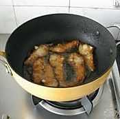 炒锅烧热,加入油烧热,将鱼块逐块放入油锅中,