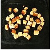 吐司面包片去边切丁,用少许蒜泥和1小勺橄榄油轻轻混合;