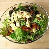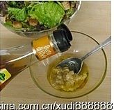 混合花叶生菜洗净滤水后随意撕成片,摆放在盘中,