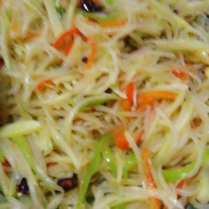放入土豆丝翻炒一下,然后加入盐和醋根据个人口味添加。翻炒一会即可出锅