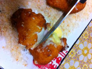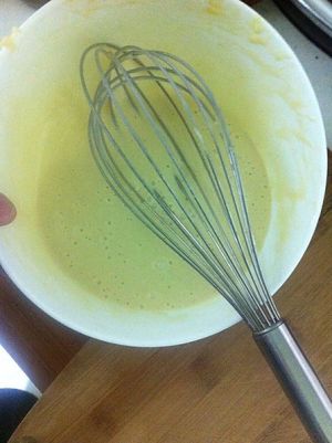 制作面糊。面粉加入鸡蛋,少量胡椒粉,少量盐