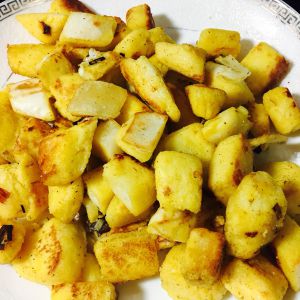 把鸡蛋打成蛋液放入切好的馒头丁.使每块馍块上都裹上蛋液