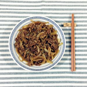 热锅热油下羊肉片,一变色后下入白洋葱,煸炒至洋葱变软,倒入料汁,翻炒均匀后放少量的盐和酱油,待收汁之后就可以停火出锅啦~