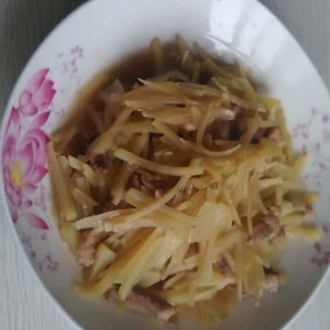 肉炒变色,约八九成熟,小火。下土豆丝。