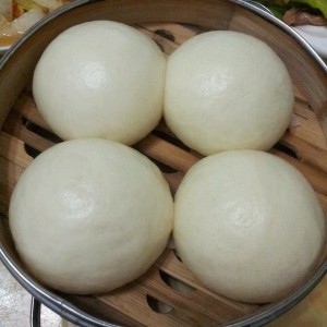蒸好了的大馒头,分了之后多了一点点面团,做了个小馒头。