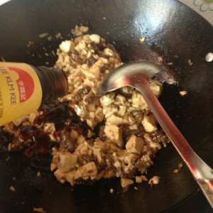放入切好的嫩豆腐,翻炒,加入适量的水,继续翻炒(豆腐会碎,但是这个没关系的)