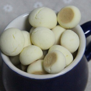 然后逐一用掌心搓成小圆球,整齐的码放在烤盘上,注意中间要留下一定的距离