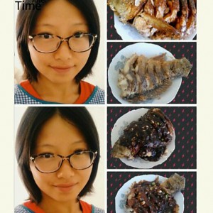 调糖醋汁撒上,用淀粉使它变粘稠。拌上葱姜蒜。