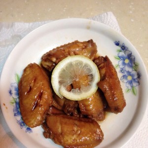 柠檬切块挤出柠檬汁,姜切片,葱切段,蒜切片,加生抽,少许红酒调个腌鸡翅的汁