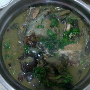 水开后,放入茄子,再次开锅放入盐,炖到汤汁快收干时点入鸡精,汁干投入香菜和蒜末,即可出锅。