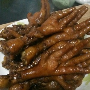 煮开后转中火煮。大约20分钟后,鸡爪上色并入味后,开始开大火收汁。待汁收好,即可出锅。