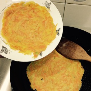 先将蔬菜擦丝,放盐,放鸡蛋,待蔬菜汁出来后,放面粉顺时针搅拌