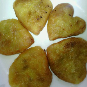 揪下来一块面团,捏成面片,放些豆沙,然后把面皮包好,可以做成圆形,可以做成心形,各种自己喜欢的形状。包好以后,可以炸着吃,可以煎着吃,怎么吃都美味!