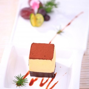 蛋黄加25克细砂糖打发,放入泡软的吉利丁片,加热融化;(要小火加热,水温不要过高,不能沸腾)