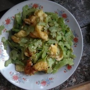 把苦瓜放锅里炒好,放点蒜末,姜末,再把蛋放锅里和苦瓜一起炒
