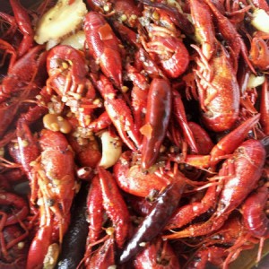 加入洗好的小龙虾翻炒,记得用锅盖压好哦,不然小龙虾就爬出来了。这一步很残忍!