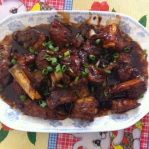 把锅烧热 放入油到5分热,放入排骨煎至金黄色 盛出。
