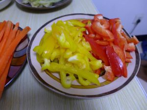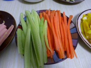 tip:将蔬菜用调料汁腌一会儿,调料汁是用一汤勺醋,半汤勺糖,小半茶匙盐调成。这样会更入味。喜欢吃其他的馅料可以加,甜椒什么的。