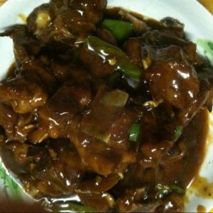 煎好待用!然后锅里有油就不用放油了!!中火炒糖色,最好用冰糖!糖变色冒泡就可倒入排骨翻炒然后把放点盐料酒酱油翻炒之后放入磨过排骨的水加入醋糖!可以根据自己口味调味!翻炒下闷个半个中!汁干点就调好淀粉倒入翻炒洒点葱花更好!!之后就可以盛出盘了!!这有成品!!